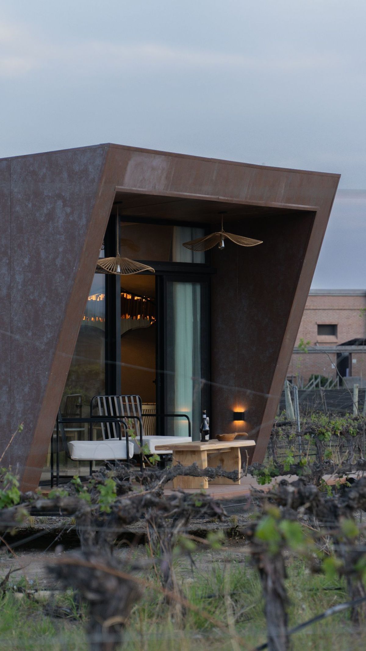 El complejo tiene un total 8 unidades independientes de 45 m², con deck y jardín propio, ubicadas estratégicamente entre los viñedos para tener cada una la mejor vista panorámica de las montañas y a la vez mantener la privacidad visual entre cada unidad. Diseñadas para ofrecer una experiencia inmersiva en la imponente escenografía de Gualtallary, y cuidando cada detalle para ofrecer el perfecto equilibrio de lujo y confort.